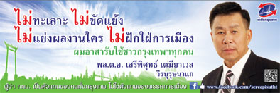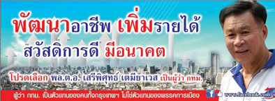 11. ให้สัญญาประชาคมว่าจะจัดการปัญหาเรื้อรังหมักหมมใน กทม. ให้เบ็ดเสร็จเด็ดขาด เช่น จัดระเบียบบาทวิถีไม่ให้ถูกยึดครองโดยพ่อค้าแม่ค้า หรือร้านรวงต่างๆ แก้ปัญหามอเตอร์ไซค์หรือยวดยานอื่นมาใช้เป็นทางวิ่งหรือฝ่าฝืนจอดรถ มาเฟียที่จอดรถ ส่งเสริมการใช้จักรยานและทำทางวิ่งสำหรับจักรยานให้เป็นจริง ขจัดปัญหาสุนัขจรจัด หรือแก้ปัญหาขอทานเร่ร่อนหรือคนจรจัดให้หมดไปจากกทม. เป็นต้น