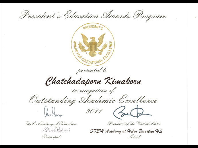 ต่อมาในปี 2008 "น้องอ้อย" บินข้ามฟ้ามาศึกษา ในนครลอสแอนเจลิส และจบการศึกษาระดับ High School ที่ Helen Bernstein High School พร้อมด้วยใบประกาศนียบัตรและเหรียญทองจากประธานาธิบดี บารัค โอบามา เนื่องด้วยเธอมีผลการเรียนยอดเยี่ยม แล้วมาศึกษาต่อด้านพยาบาลที่ Santa Monica College ตอนนี้เรียนอยู่ปี 2