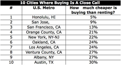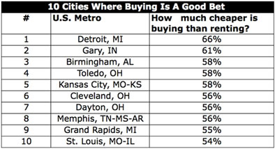 หากคุณยังคงสงสัยอยู่ว่าความคุ้มค่าของการตัดสินใจว่าจะซื้อบ้านแล้วมองว่ามันเป็นหนึ่งของการลงทุนระยะยาว จะดีกว่าการเช่าบ้านหรือไม่? ลองดูตารางเปรียบเทียบการจัดอันดับเมืองใหญ่ในสหรัฐฯ ในเรื่องของความคุ้มค่าระหว่างการเช่ากับการซื้อดูนะคะ (เครดิตข้อมูลจากนิตรยสาร Forbes เดือนมีนาคม 2014)