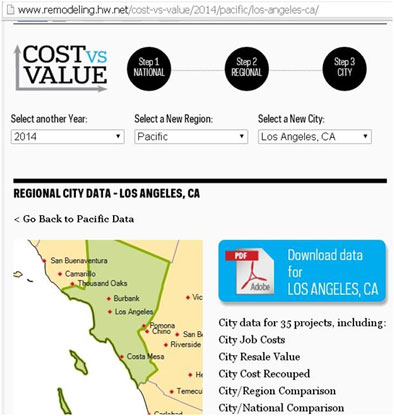 เวบไซต์ www.remodeling.hw.net/cost-vs-value/2014 เป็นหนึ่งในเวบเพื่อให้ข้อมูลโดยละเอียดถึงงบประมาณในการลงทุนอัพเกรดบ้าน และผลกำไรที่จะได้รับในภายหลัง