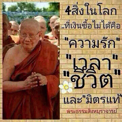 วันนี้จะเขียนเรื่องเกี่ยวกับ “เงิน” โดยได้รับการติดต่อจากคนไทยหลากหลายอาชีพ ที่ส่วนใหญ่มีปัญหาเกี่ยวกับเรื่องเงินทั้งนั้น ก่อนอื่นอยากจะเอาคำเทศน์ของท่านพระธรรมสิงหบุราจารย์ (หลวงพ่อจรัญ ธิตธมุโม) แห่งวัดอัมพวัน จ.สิงห์บุรี ซึ่งท่านเทศน์ว่า 4 สิ่งในโลกที่เงินซื้อไม่ได้ คือ