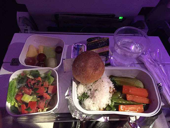 พอได้ทานอาหารบนเครื่องบินแล้วก็นึกถึงการบินไทย อีว่า เกาหลี ที่มีอาหารที่ดูน่าทานกว่ามากเลย ผมสั่งอาหารเจเพราะไม่อยากอัดจนอิ่ม ได้ทานสองมื้อกว่าจะถึงลอนดอน ก็แบบประหยัด เรียบง่าย ปริมาณน้อย ที่แปลกคือ อย่าได้หาไม้จิ้มฟัน สายการบินฝรั่งเขาไม่ใช้กัน เวลาไปไหน ผมชอบสังเกตห้องน้ำ เพราะมันบ่งบอกถึงความสะอาด ส่วนอื่นๆของตัวเครื่อง หรือของประเทศนั้นๆ เพราะส้วมนี่เป็นสิ่งจำเป็นที่ต้องมีการรักษาความสะอาดกันตลอด ในเครื่องแอร์นิวซีแลนด์มีห้องน้ำที่เรียบง่าย แต่เก๋ดี เพราะมีวอลเปเปอร์ติดโดยรอบ ซ้ำยังเปิดเพลงเบา ๆ ให้ฟังขณะใช้ห้องน้า อันนี้เขาสอบผ่านเลย ติอยู่อย่างเดียว เขาไม่มีโลชั่น หรือน้ำหอมโคโลญให้ฉีดเหมือนสายการบินเอเชียเรา