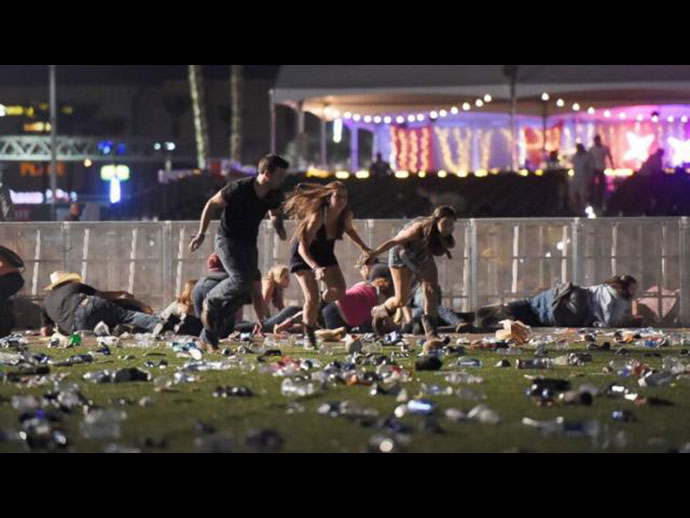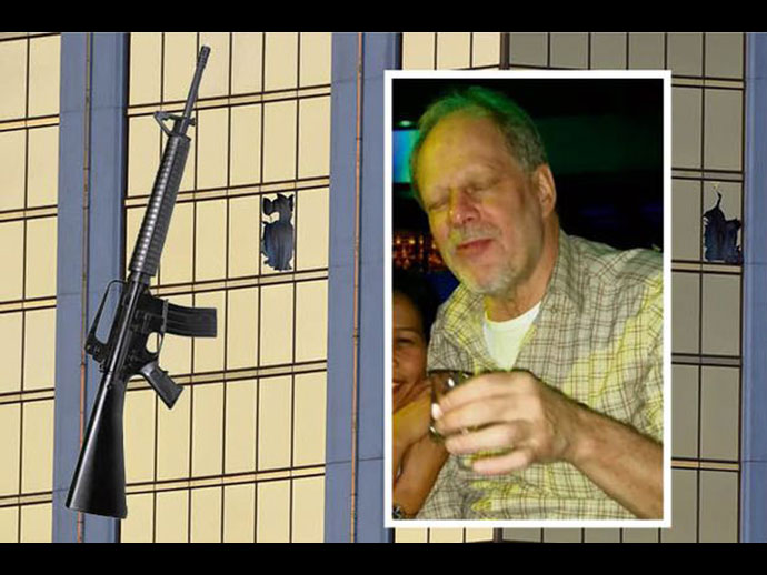 ฆาตกรคือ นายสตีเฟ่น เคร็ก แพดด็อค (Stephen Craig Paddock) อายุ 64 ปี เศรษฐีเงินล้าน อดีตนักบัญชี และนักพนันตัวยง ได้สร้างความโหดร้าย ลบสถิติการฆ่าหมู่ในประเทศอเมริกาได้สำเร็จ โดยการยิงประชาชนที่กำลังดูคอนเสิร์ตตาย 59 คน บาดเจ็บกว่า 527 คน ด้วยการใช้อาวุธสงคราม ปืนกลที่มีการประยุกต์ให้มีขีดความสามารถยิงได้นาทีละ 600 นัด