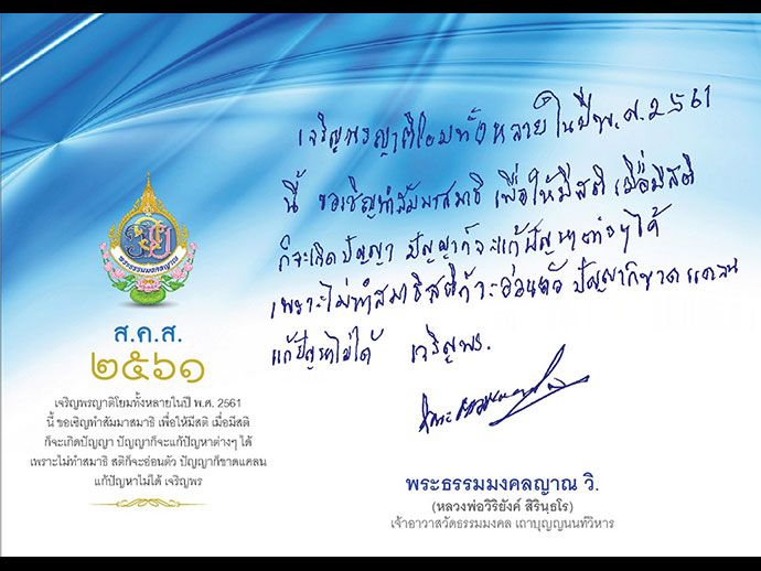 สวัสดีปีใหม่ พ.ศ. 2561 ในศุภวาระขึ้นปีใหม่นี้ ผู้เขียนและครอบครัว ดีสมเลิศ-ฉัตรประภาชัย ขออำนาจคุณพระศรีรัตนตรัยและสิ่งศักดิ์สิทธิ์ทั้งหลายในสากลโลก ได้โปรดอำนวยพรให้ท่านผู้อ่านและครอบครัว มีความสุข สมหวัง ในสิ่งที่ปรารถนา สุขภาพพลานามัยแข็งแรงสมบูรณ์ มีสติในการดำเนินชีวิต ขอให้บุญรักษา เทวดาคุ้มครอง พระรัตนตรัยปกป้องท่านและครอบครัวด้วยเทอญ