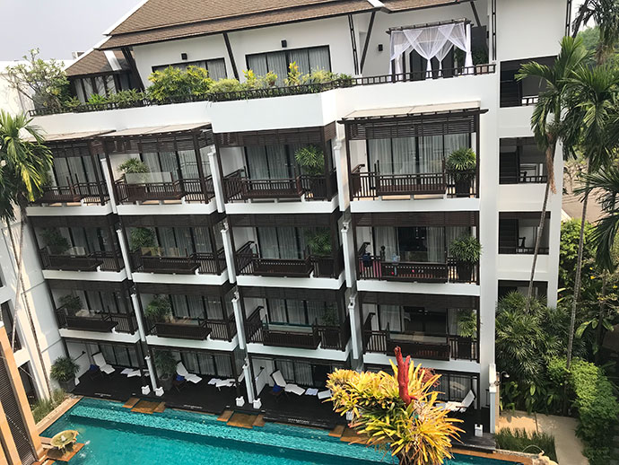 มีบริการอาหารเช้าของโรงแรมให้ฟรี และยังมีจักรยานให้ขี่ไปตลาดปากซอย ซื้อปาท่องโก๋ น้ำเต้าหู้ มาทานกันได้ มีข้าวโพดต้มราคา 20 บาท ทานอิ่มอร่อยด้วยนะครับ การออกแบบโรงแรมที่ผสมผสานภายในแบบล้านนาเข้ากับสไตล์โคโลเนียลแบบอังกฤษ