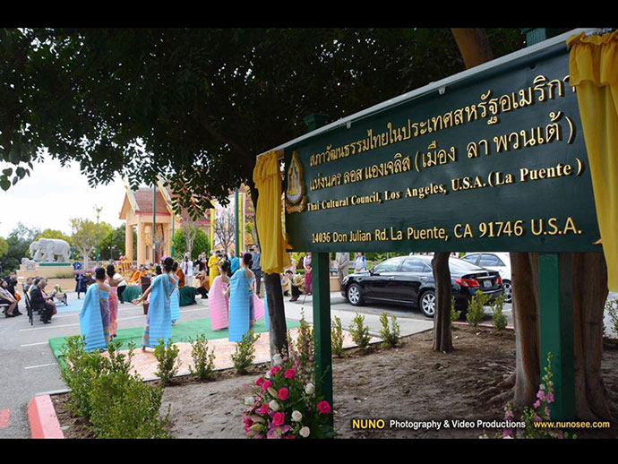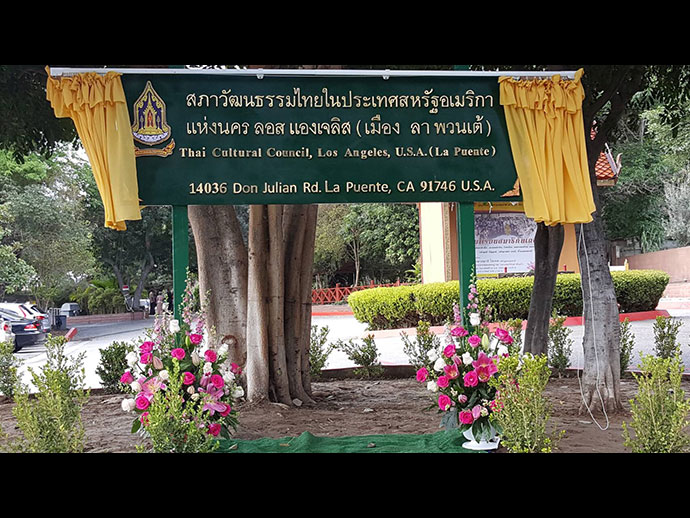 หลังจากนั้น จึงมีพิธีเปิดแพรคลุมป้ายสภาวัฒนธรรมไทยในสหรัฐอเมริกา แห่งนครลอสแอนเจลิส (เมืองลา พวนเต้) ณ วัดป่าธรรมชาติ เมืองลา พวนเต้ มลรัฐแคลิฟอรืเนีย ในวันที่ 24 มีนาคม พ.ศ. 2561 โดยได้รับเกียรติจาก ดร. ฉวีรัตน์ เกษตรสุนทร ผู้ช่วยรัฐมนตรีประจำกระทรวงวัฒนธรรม พร้อมด้วยฐาปนันดรศิลปิน-อดีตนายกรัฐมนตรี นายชวน หลีกภัย และคณะศิลปินแห่งชาติ เดินทางมาถวายหนังสือรับรอง และประกาศตั้งคณะกรรมการดำเนินงาน พร้อมถวายของที่ระลึกแก่พระราชญาณโกศล