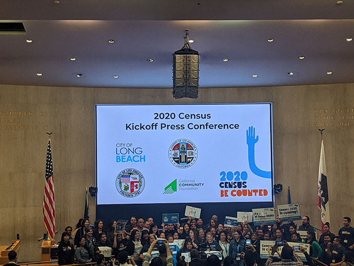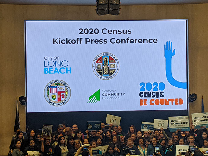 เมื่อวันที่ 12 มีนาคม ค.ศ. 2020 ที่ผ่านมา ทางลอสแอนเจลิสเคาน์ตี้ร่วมกับนครลอสแอนเจลิส เมืองลองบีชและมูลนิธิชุมชนแคลิฟอร์เนียเปิดงาน 2020 Census ที่หอประชุม Kenneth Hall of Administration ในดาวน์ทาวน์ลอสแอนเจลิส งานดังกล่าวถือเป็นการเริ่มต้นวันแรกของการนับสำมะโนประชากรของปี 2020 อย่างเป็นทางการ และทางสำนักงานสำรวจสำมะโนประชากรแห่งสหรัฐก็ได้ส่งจดหมายไปยังประชาชนในทุกครัวเรือนเพื่อเชิญชวนให้เข้าร่วมการนับประชากรทางออนไลน์ ทางไปรษณีย์ หรือทางโทรศัพท์