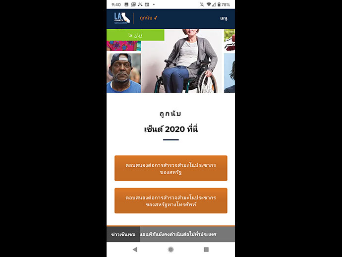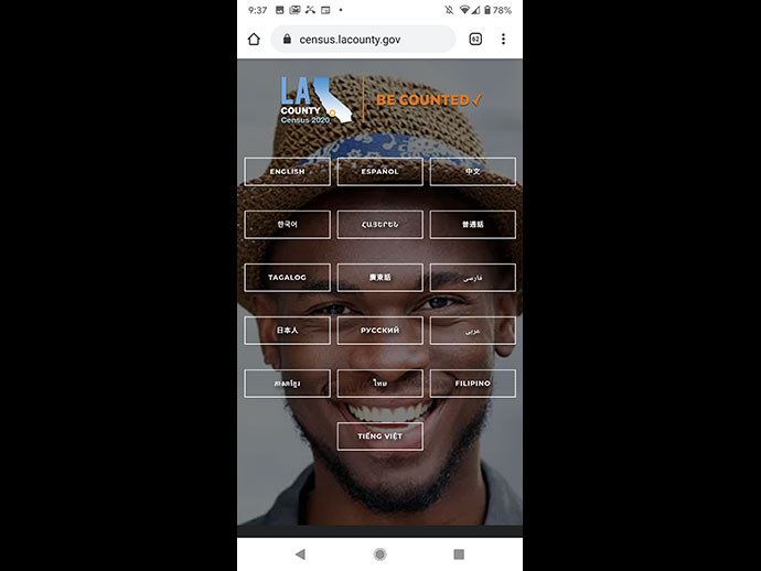 สำหรับผู้อยู่อาศัยที่ไม่สามารถสื่อสารเป็นภาษาอังกฤษ เวบไซด์ L.A. County 2020 Census ได้จัดทำข้อมูลของเฉพาะของเคาน์ตี้ใน 16 ภาษา (รวมทั้งภาษาไทย) โดยเวบไซด์ยังให้ข้อมูลทั่วไปใน 59 ภาษา สามารถเข้าไปดูได้ที่เวบไซด์ https://census.lacounty.gov/ และ https://2020census.gov/