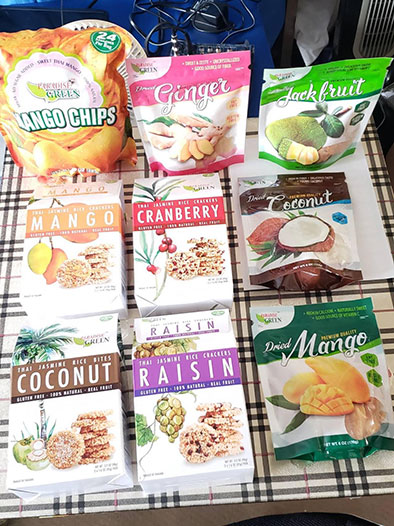 จนมาเมื่อวันที่ 9 ตุลาคม 2019 ดิฉันได้รับเชิญไปงาน LAFW ที่เพิ่งนำนักออกแบบแฟชั่นไทยมาเดินแฟชั่นโชว์ จึงได้พบกับบู๊ทที่มีผลไม้อบแห้งและสินค้าประเภทของขบเคี้ยววางโชว์ให้แขกผ฿มาร่วมงานรับประทานเป็นตัวอย่าง มี Spicy Dried Mango ที่ดิฉันเคยซื้อมาจากห้างคอสโก้ด้วย