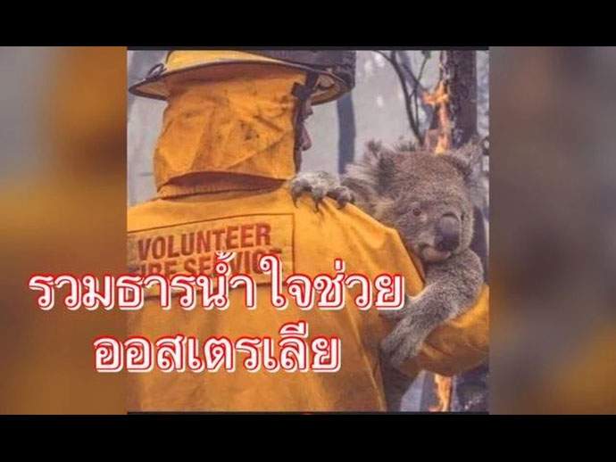 ข่าวใหญ่ปลายปี 2019 คงไม่มีข่าวใดในโลกเกิน ข่าวไฟไหม้ป่าที่ลุกลามเผาไหม้ป่าที่ประเทศออสเตรเลีย รวมไปถึง บ้านช่องที่อยู่อาศัย คร่าชีวิตเกือบ 30 ทั้งคนและสัตว์เป็นพันๆล้านตัว โดยเฉพาะ จิงโจ้ และหมีน้อยอุ้ยอ้ายโคอาล่าที่แสนจะน่ารักตามที่ทุกคนคงเห็นเป็นข่าวทั้งทางหนังสือพิมพ์ วิทยุและโทรทัศน์กันเกือบทุกๆวัน ดิฉันเป็นคนหนึ่งที่ติดตามข่าวด้วยความสลดหดหู่สงสารพวกเค้าสุดใจ