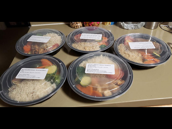 ดิฉันก็เป็นผู้สูงวัยคนหนึ่งที่อยู่ในกลุ่มเสี่ยงการติดเชื้อได้ง่าย และมีคุณสมบัติในการได้รับความช่วยเหลือจากโครงการจัดส่งอาหารฟรีในช่วงวิกฤตินี้ด้วย โดยการสมัครเข้าไปขอใช้สิทธิ์ และได้รับการอนุมัติ ได้รับอาหารมาส่งถึงบ้าน กล่องใหญ่ บรรจุอาหาร 5 กล่อง ที่ได้รับมา มี ปลาแซลม่อนย่างกับผักลวก และเสริฟมาบนข้าวบาร์ลีย์ – Chicken Kabob – B-B-Q Beef –Chicken LuLu – Beef Kabob อร่อยมาก..ขอบอก จะได้รับอาหารอาทิตย์ละ 2 ครั้ง