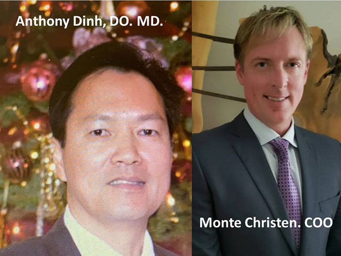 ท่านแรกคือ นายแพทย์ Dr.Anthony Dinh และท่านที่สอง คือ คุณหมอ Monte Christen (วิสัญญีแพทย์) เป็นเจ้าของโครงการตรวจ Antibody Covid 19 ทั้งสองทำงานร่วมกันในนามบริษัท Elite Care Medical Group......
