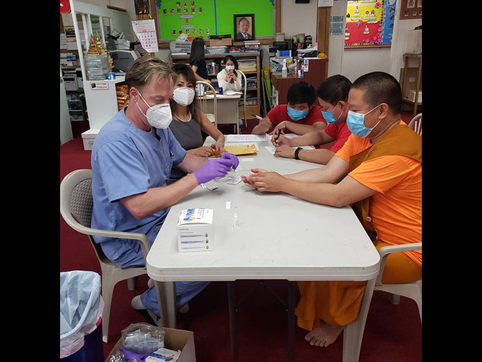 นับเป็นโชคดีของชุมชนไทยที่มีผู้ทรงคุณวุฒิระดับนายแพทย์ที่ค้นพบเครื่องตรวจไวรัสโควิด 19 ที่ให้ผลลัพย์ใกล้เคียงความถูกต้องมากที่สุด ณ.ปัจจุบัน มาช่วยให้พวกเราได้คลายความหวาดกลัวว่าจะติดเชื้อและคลายเครียดจากความกังวล มายังคนไทยด้วยความห่วงใยโดยได้อุทิศเวลามาช่วยตรวจให้ชุมชนไทยเป็นแห่งแรก ที่ทาง Elite Care Medical Group ได้อาสามาตรวจให้ที่แห่งแรกคือ ตลาดโฮลเซล Lax –C, LA. ได้ตรวจพนักงานไป 38 คน ครั้งที่ 2 ได้ไปตรวจให้กับพระสงฆ์และครูอาสาที่วัดพระธาตุดอยสุเทพที่เมือง Chino Hills จำนวน 9คน ครั้งที่ 3 จะมีขึ้นที่ Hollywood Career College วันเสาร์ที่ 6 มิถุนายนนี้ ตั้งแต่เวลา 11 โมงเช้าเป็นต้นไป มีผู้แจ้งความจำนงค์มาแล้ว 260 คน และ จะไปทำการตรวจให้พนะสงฆ์ที่วัดไทยลอสแอนเจลิสในโอกาสต่อไปอีกด้วย