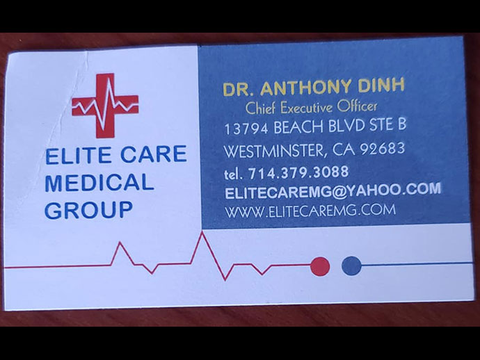 เมื่อวันเสาร์ที่ 6 มิถุนายน 2020 ที่ผ่านมา บริษัท Elite Care Medical Group นำโดย นายแพทย์ แอนโทนี่ ดินห์ CEO ประธานกรรมการบริหาร, นายแพทย์ มอนเต้ คริสติน CCO ประธานบริหารฝ่ายการสื่อสาร พร้อมด้วยทีมงานผู้ช่วยนายแพทย์ คุณมุก ญาดามณีรัตน์ พัฒนสินโชติวุฒิ, คุณเอมมี่ บุณยนุช อุดมศิลป์, คุณสุธินา บำรุงรัตน์, คุณเชนวริท ศิลปี, President HWH. (ประธานชมรมส่งเสริมความสุขแอลเอ) จากการประสานงานของดิฉัน – คุณมุกกับผู้บริหารโรงเรียนสอนนวด Hollywood Career College คือครูอุ๋ม อุมาริน วอคเตอร์ แสงทองแสงแก้ว และคุณเหน่ง ทีมงานของโรงเรียน ซึ่งมีคุณเหมี่ยว ขนิษฐา เพไรด้า นายกสมาคมไทยแห่งแคลิฟอร์เนียภาคใต้ และสามีคุณจอห์นเป็นผู้แนะนำโรงเรียนให้ติดต่อเพื่อใช้ Hollywood Career College เป็นสถานที่ในการตรวจหาเชื้อไวรัสให้นักเรียนและชาวไทยทีต้องการมาตรวจ
