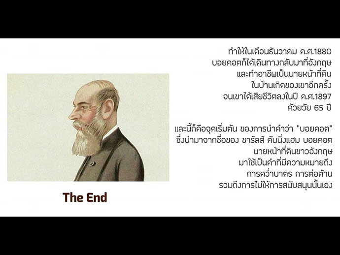 เมื่อวันอาทิตย์ที่ผ่านมา 8/30/2020 ชมรมส่งเสริมความสุขได้มีโอกาสไปทำบุญติดกัณฑ์เทศน์มหาชาติที่วัดป่าธรรมชาติ เมืองลาปวนเต้ ร่วมกับสมาคมไทยฯ, อีลีทแคร์เมดิคอลกรุ๊ป, มูลนิธิธารน้ำใจ, Primerica และผู้มีจิตศรัทธา ได้มีโอกาสฟังเทศน์มหาชาติ ปางที่ 9 ปางนางมัทรีที่ต้องเสียโอรส-ธิดา 2 คนให้กับชูชก โดยท่านพระครูภัทรกวีวัฒน์ คือท่านคำรณ ภททโก เป็นผู้แสดงธรรม ก่อนที่ท่านจะแสดงธรรม ท่านเล่าให้ฟังถึงเรื่องความเป็นมาของคำว่า บอยคอต หรือคว่ำบาตร ทุกคนคงได้ยินคำนี้มาก่อน ความหมายก็คือ ไม่ซื้อ ไม่ขาย ไม่คบหาสมาคมด้วย ดิฉันจึงเกิดแรงบันดาลใจเขียนบทความนี้ให้คุณๆแฟนคลับได้อ่านกัน เพราะได้ยินคำนี้บ่อยๆแต่อาจไม่รู้ถึงความเป็นมา ดิฉันจึงไปค้นคว้ามาให้อ่านกัน เพื่อเป็นประโยชน์ให้คุณๆไปเล่ากันต่อในวงสนทนา