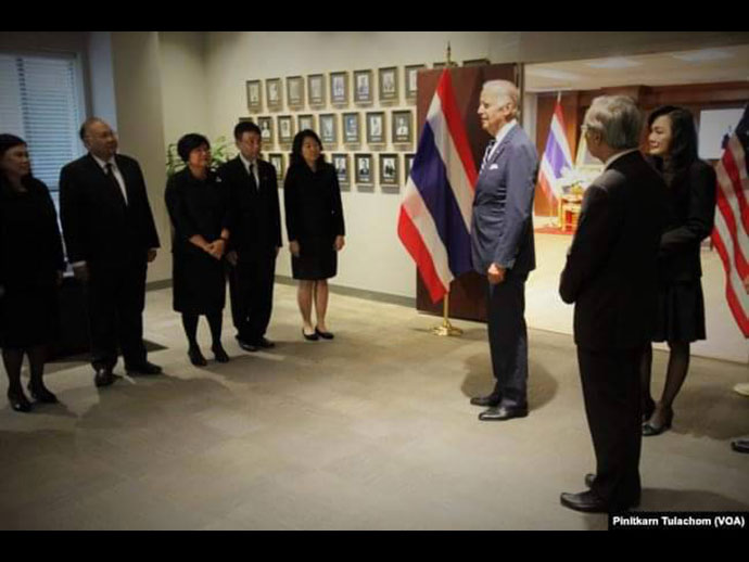 กระทรวงการต่างประเทศ ซึ่งได้เผยแพร่ไว้ใน เฟซบุ๊กเพจ "กระทรวงการต่างประเทศ Ministry of Foreign Affairs of the Kingdom of Thailand" โดยระบุว่า เมื่อวันที่ 18 ตุลาคม 2559 นายโจ ไบเดน รองประธานาธิบดีสหรัฐฯ ร่วมลงนามถวายความอาลัย พระบาทสมเด็จพระปรมินทรมหาภูมิพลอดุลยเดช ในนามของประธานาธิบดีโอบามาและประชาชนอเมริกัน ที่สถานเอกอัครราชทูต กรุงวอชิงตัน ดี.ซี. (ขอบคุณอินเตอร์เน็ทที่ให้ข้อมูลนี้ค่ะ)