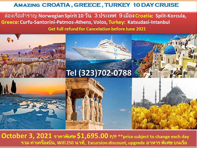 ฤดูใบไม้ร่วงปีนี้ เดือนตุลาคม 2021 หลังจากทุกคนฉีดวัคซีนป้องกันโควิด 19 กันหมดแล้ว ดิฉันจะพาคณะเพื่อนๆล่องเรือสำราญ Norwegian Spirit ไปเที่ยวให้สะใจ 3 ประเทศ โครเอเซีย กรีก และเตอรกี ใครสะดวกขอเชิญร่วมก๊วนไปกับพวกเรเพื่อเปิดหูเปิดตา หลังจากถูกกักตัวมาปีกว่า กันนะคะ