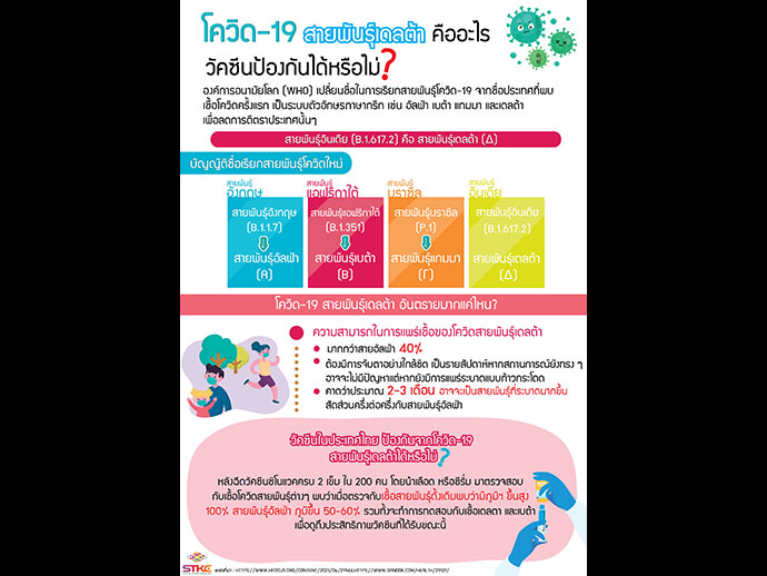 - สายพันธุ์อินเดีย (B.1.617.2) คือ สายพันธุ์เดลต้า (Δ)