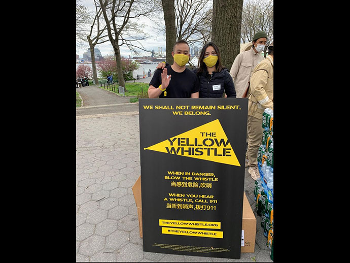 The Yellow Whistle Project เริ่มเมื่อวันที่ 19 เมษายน 2021 ได้มีการแจกนกหวีดสีเหลือง 50,000 ที่มีการออกแบบและมีสัญญลักษณ์ “We Belong” ให้กับหลายๆชุมชนชาวเอเซีย และหมู่เกาะแปซิฟิค เพื่อป้องกันการถูกรังแกถูกทำร้ายจากคนเหยียดผิวและตอกย้ำความสามัคคี “Unity against Hate” ให้ชาวเอเซียรวมตัวกันต่อต้านการเหยียดผิว ดูเว็บไซท์ที่ theyellowshidtle.org. ติดตามได้ใน เฟซบุ๊ค อินสตาแกรม ทวิตเตอร์, Linkedln, TikTok, KaKao Story and WeChat.