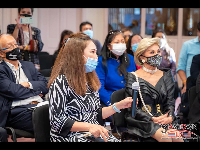 มีผู้เข้าร่วมงานแถลงข่าวและพบปะชุมชนประมาณไม่เกิน 50 คน ตามนโยบายป้องกัน โควิด ท่านกสญ.เปิดโอกาสให้ถามและตอบปัญหา ซึ่งได้ตอบทุกคำถามอย่างชาญฉลาด สมกับเป็นคนรุ่นใหม่ ที่มีมนุษย์สัมพันธ์ดี กระตือรือล้น ยิ้มแย้มแจ่มใส เข้าถึงชุมชนโดยไม่ถือเนื้อ ถือตัว ประทับใจกับนโยบาย และบุคคลิกของท่านกงสุลใหญ่ต่อ ศรลัมพ์ ดีใจที่ได้ผู้นำเป็นคนรุ่นใหม่ตัวแทนของประเทศไทยในแดนไกลแห่งนี้ ยินดีต้อนรับค่ะ และยินดี ที่จะได้เป็นส่วนหนึงของนโยบายใต้หัวข้อ Synergy การรวมพลังช่วยกันทำให้ชุมชนดีขึ้นในทุกๆทางค่ะ