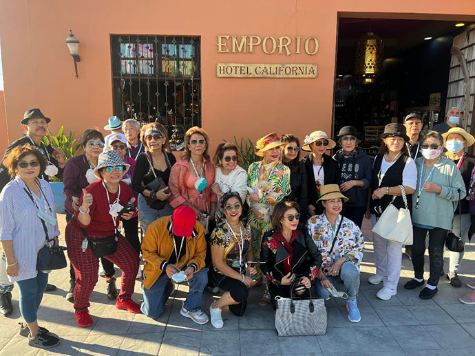 วันที่ 1 มกราคม 2022 เป็นวันแรกของปีใหม่ เราฉลองทานอาหารเช้ากันในเคบิน มีพนักงานบริการนำมาเสริฟ ครบเซ็ททุกอย่าง น้ำชากาแฟ ไข่ดาว หมูแฮม เบคอน ไส้กรอก ขนมปัง ผลไม้สด ก่อนที่จะเตรียมตัวออกไปเที่ยวเมือง Cabo San Lucas ประเทศ Mexico เราจัดไปรเวทโค๊ชมารับพวกเรา 30 คนที่จะไปเที่ยวเมือง คาโบ และเมือง Todos Santos เพี่อแวะชม สถานที่สวยงามโดดเด่น คือ Hotel California ที่เป็นต้นกำเนิดเพลง Hotel California แต่งโดย Don Henley and Glenn Frey ร้องโดยคณะ Eagles พวกเราเปิดเพลง Hotel California ดังกระหึ่มไปทั้งรถเรียกความตื่นเต้นได้อย่างสนุกสนาน