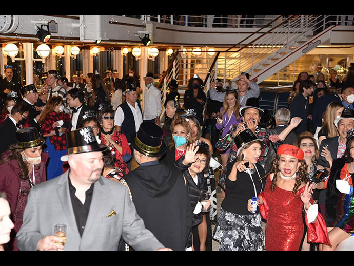 พวกเราคนไทย 60 คนร่วมฉลองปะปนไปกับคนต่างชาติ อย่างสนิทสนมและอบอุ่น เป็นความรู้สึกที่ดีๆและประทับใจมากมาย เราทุกคนมีความสุข และดูแลสุขภาพ ด้วยการใส่หน้ากาก รักษาระยะห่าง กว่าจะกลับถึงเคบิน เป็นเวลา ตีสามเพราะเวลามีความสุขมักจะผ่านไปเร็ว