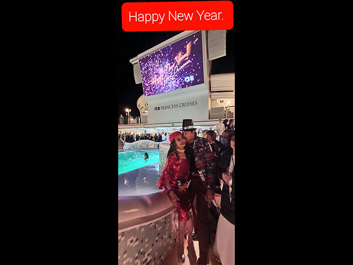 ไชโย...ในที่สุดเราก็ได้ต้อนรับปีใหม่กับปีเสือทอง ทึกทักว่าเป็นแม่เสือสาวไว้ก่อนตามมาด้วยพ่อเสือหล่อๆทั้งหลาย ปีนี้เป็นปีเฮงๆแน่เลย เพราะพวกเรา 60 คนพร้อมใจกันไปฉลองส่งท้ายปีเก่า ต้อนรับปีใหม่กันบนเรือสำราญ Grand Princess Cruise ที่จุผู้โดยสารได้ 2,600 คน แต่เนื่องด้วยช่วงโรคระบาดโควิดยังไม่ค่อยสงบ ทางเรือจึงจำกัดรับคนได้เพียง 1,600 คนเท่านั้น