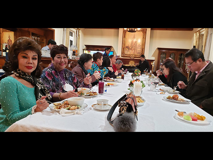 หลังสนทนากันได้สักครู่ ทุกคนถูกเชิญให้ร่วมรับประทานอาหารค่ำแบบบุ๊ฟเฟ่ซึ่งมีอาหารให้เลือกมากมายทั้งของคาว – ของหวาน และผลไม้ ที่จัดและตกแต่งได้สวยงามโดยฝีมือทีมแม่บ้านมือโปรฯมีดีกรี จากมหาลัยสวนดุสิตเป็นประกัน ช่วงนี้ ได้มีผู้สื่อข่าวจากหนังสือพิมพ์ไทยแอลเอ, คุณผิง รุจิลาภา พัฒนะ และ ลาสเวกัสนิวส์ คุณตะวันฉาย มาสมทบ