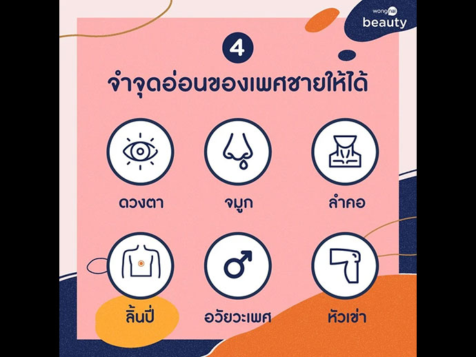 4. จำจุดอ่อนของเพศชายให้ได้ เราเชื่อว่าจุดอ่อนหลัก ๆ ที่ทุกคนจำได้อาจจะเป็นดวงตา หรืออวัยวะเพศ แต่อันที่จริงแล้วยังมีจุดอ่อนอื่น ๆ ที่ทำให้คนร้ายหยุดชะงัก จนเรามีเวลาพอที่จะหนีอีกดังนี้เลยค่ะ ดวงตา, จมูก, ลำคอ, ลิ้นปี่, อวัยวะเพศ และหัวเข่า