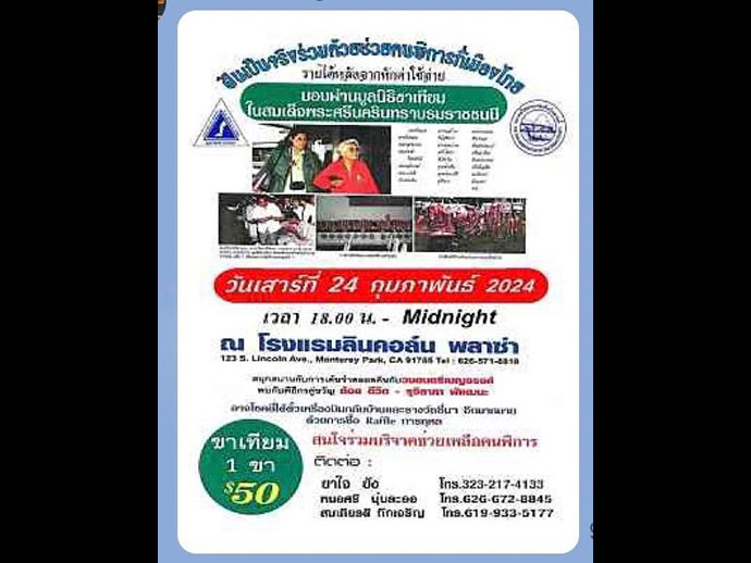 ซึ่งในปี 2567 ประธานจัดงาน ได้แก่คุณยาใจ ยัง ได้แถลงข่าวถึงจุดประสงค์ของการจัดงาน เพื่อระดมทุนตั้งเป้าไว้ที่ 2 ล้านบาทเพื่อนำขึ้นทูลเกล้าถวายพระกนิษฐาธิราชเจ้าฯ ซึ่งคุณพนอศรี เทียนทอง ประชาสัมพันธ์ของโครงการได้แถลงข่าวว่า ธีมของงานการกุศลนี้ภายใต้ชื่อ Dance & Dance การกุศล โดยจะมีการเต้นลีลาศเป็นหลัก กับวงดนตรี เบญจรงค์ ที่ Lincoln Plaza Hotel 123 S. Lincoln Ave., Monterey Park CA 91755 ตั้งแต่เวลา 6.00 pm – Midnight บัตรราคา $65 ธรรมดา VIP $75 ติดต่อซื้อบัตรได้ที่ (323)217-4133, (626)672-8845, (619)933-5177