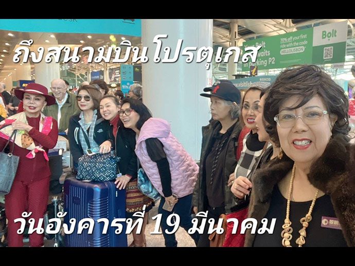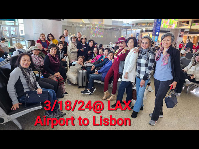 วันที่ 18 มีนาคม 2024 คณะเรา 50 คน ออกเดินทางโดยสายการบิน Lufhansa ออกจากสนามบิน LAX บ่าย 4 โมง 5 นาที ต่อเครื่องที่ สนามบิน แฟร๊งค์เฟิร์ตม เยอรมัน ถึง เมืองหลวงปอร์ตุเกส ลิสบอน บ่าย 3 โมง ของวันที่ 19 มีนาคม 2024