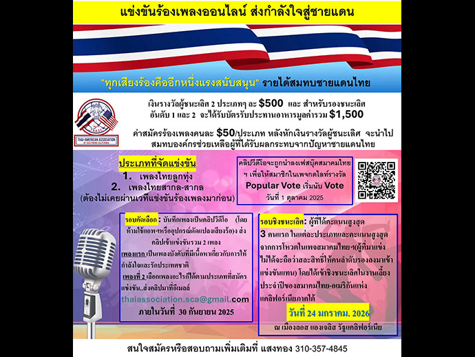 สวัสดีค่ะ ใกล้จะขึ้นปีใหม่แล้ว อายุจะเพิ่มมากขึ้น เวลาที่จะมีชีวิตอยู่ในโลกจะน้อยลงทุกปี จะว่าแก่ลงก็ย่อมได้ เราควรจะรัก สามัคคีกันให้มากๆ โดยเฉพาะในต่างแดนควรจะรวมตัวกันสร้างชุมชนของคนไทยให้แข็งแกร่งมีคุณภาพ