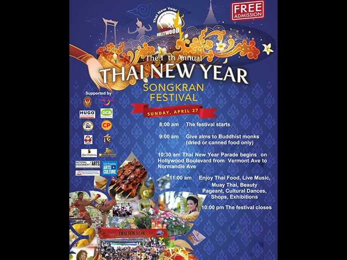 ตลอดเดือนเมษายนทั้งเดือน จะมีงานฉลองปีใหม่ไทยตามวัดต่างๆทุกอาทิตย์อีกด้วย และอาทิตย์ที่ผ่านมามีงานสงกรานต์เกิดขึ้นหลายแห่ง ทั้งจัดที่วัดไทยในเมืองแอลเอและเมืองใกล้เคียง เช่นวัดไทยนอร์ทฮอลลีวูด มีผู้คนไปร่วมงานมากมาย อีกทั้งจัดฉลองกันตามร้านอาหาร โดยเฉพาะชมรมส่งเสริมความสุขได้จัดฉลองเทศกาลสงกรานต์ และ จัดฉลองคนเกิดเดือนเมษายนที่ร้านมโนราห์ให้กับผู้ไปร่วมงานเกือบ 50 คน อย่างครึกครื้น สนุกสนาน ส่งรูปมาบางปันความสุขให้ทุกคนมาด้วย