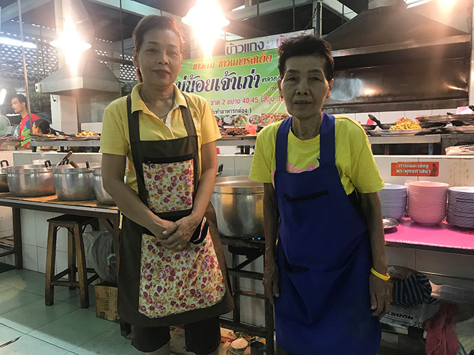ช่วงกลับไปเยี่ยมกรุงเทพฯ ผมยังได้รู้จักกับแม่ค้าขายข้าวแกง ที่ ‘ร้านข้าวแกงแม่น้อย’ ตลาดวงเวียนใหญ่ แม่ลูกสองท่าน คุณแม่ชื่อ ศุภาการต์ (น้อย) สัตย์ซื่อ อายุ 78 ปี และลูกสาวชื่อ ชุติภา (แอ๊ด) สัตย์ซื่อ อายุ 57 ปี ขยันทำมาหากินในยุคเศรษฐกิจตกสะเก็ดในขณะนี้ ทำกันเองในครอบครัว มีลูกจ้างพม่าช่วยคนหนึ่ง จ่ายค่าจ้าง 400 บาทต่อวัน แต่ละวันจะทำอาหาร 30 อย่าง อาหารอร่อย ราคาถูก ระหว่าง 20-50 บาท ก็ทานอิ่มได้