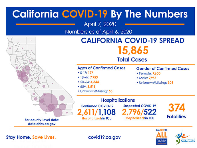 ส่วนรัฐแคลิฟอร์เนีย มีผู้ติดเชื้อ 15,865 ราย ตาย 374 คน