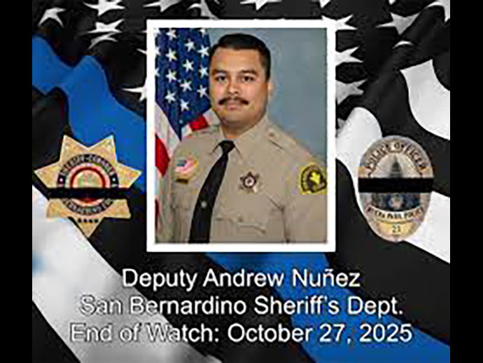 Deputy Andrew Nunez วัยเพียง 28 ปี จากสำนักงานนายอำเภอมณฑลซานเบอร์นาดิโน (San Bernardino County Sheriff’s Department), California