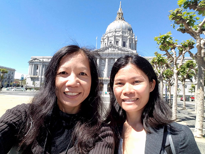 จะไม่ให้ฉันเก่งภาษาได้ยังไงล่ะคะ ฉันมีโอกาสได้แปลในสถานการณ์จริงที่หลากหลายอยู่ตลอด และจะบอกกับทุกคนด้วยว่าถ้าเห็น อะไรผิดพลาด ช่วยแก้ให้ด้วย พี่บ้านก็มีสามีชาวอเมริกันคอยแก้ภาษาให้ ถ้ามีอะไรขัดหูเขา เขาก็จะแก้ให้เรา