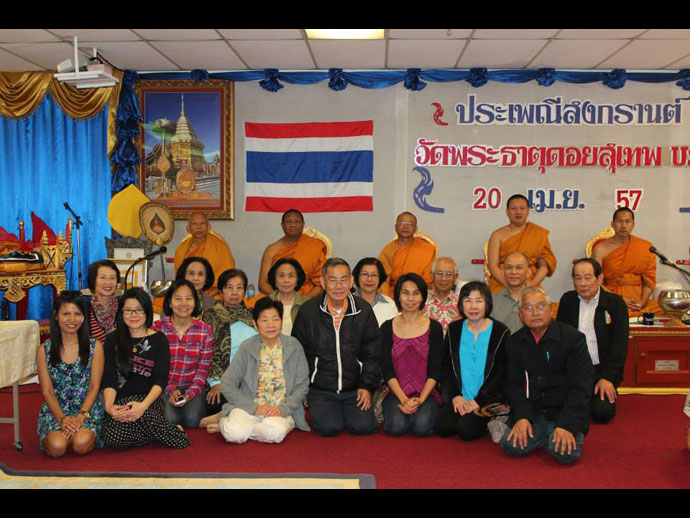 ขอเชิญขอเชิญบำเพ็ญบุญประเพณีสงกรานต์ สืบสานวัฒนธรรมไทย และงานดินเนอร์ขันโตกการกุศล วันอาทิตย์ที่ 20 เดือนเมษายน พ.ศ. 2557 ตั้งแต่เวลา 10.00 น. เป็นต้นไป ทำบุญตักบาตร/ถวายภัตตาหารเพล/ถวายสังฆทาน ฟังพระธรรมเทศนา โดย พระครูสุธรรมโสภณ ฟัง-ชม ดนตรีไทย สรงน้ำพระบรมสารีริกธาตุ สรงน้ำพระพุทธรูป 8 ปาง ประจำวันเกิด/สรงน้ำพระสงฆ์ รดน้ำญาติผู้ใหญ่ ขอศีลขอพร บังสุกุลรวมญาติ/ทอดผ้าป่าสามัคคี และขอเชิญร่วมงานดินเนอร์ขันโตกการกุศล รับประทานอาหารเหนือ /ร้องเพลงการกุศล เริ่มงานเวลา 17.00 น. (5.00 pm) เป็นต้นไป รับประกันโดย นิตยา โชติรโส ประธานจัดงาน บัตรราคา $ 25 ติดต่อสอบถามได้ที่ Tel: 909-606-9502 www.watdoisuthepusa.org E-mail: watchino18@gmail.com และขอเชิญร่วมงาน “วันวิสาขบูชา วันสำคัญสากลของโลก” วันอาทิตย์ที่ 11 พฤษภาคม 2557 ตั้งแต่เวลา 10.30 น. เป็นต้นไป ร่วมทำบุญตักบาตร ถวายสังฆทาน ทอดผ้าป่าสามัคคี ฟังดนตรีไทย ฟังพระธรรมเทศนา