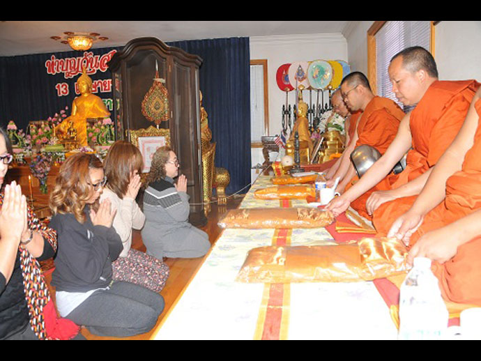 สำหรับงานไทยนิวเยียร์สงกรานต์เฟสติวัล ณ ไทยทาวน์ บนถนนฮอลลีวูด วันอาทิตย์ที่ 6 เม.ย. นี้ วัดไทยฯ ได้รับมอบ หมายให้เป็นฝ่ายบุญพิธี เพื่อพี่น้องไทยที่ไปร่วมงานได้ร่วมบุญถวายสังฆทาน บังสุกุลอุทิศให้บรรพบุรุษตามประเพณีที่ ปฏิบัติอยู่ในบ้านเกิดเมืองนอนของเรานั้น ขอย้ำว่าทางวัดจัดบริการอาหารใส่บาตรสำหรับพี่น้องไทยได้บูชาใส่บาตรกัน ซึ่งสถานที่ใส่บาตรอยู่บริเวณเวทีใหญ่ (Stage 2) บริเวณหน้าร้านระเบียงไทย โดยพิธีทำบุญตักบาตรจะเริ่มเวลาประมาณ 09.00 น. เป็นต้นไป