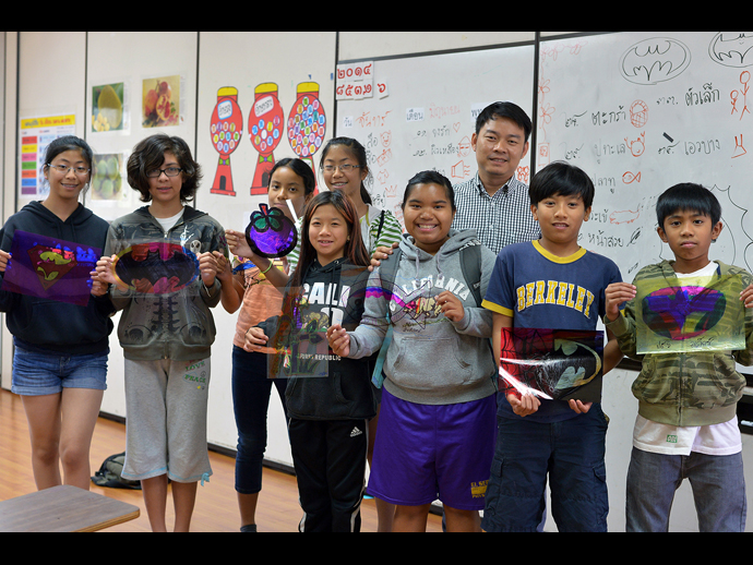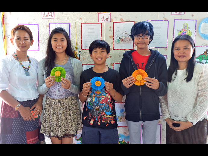 ผ่านไปเป็นสัปดาห์ที่ 3 แล้ว สำหรับการเรียนการสอนภาษาไทยและวัฒนธรรมไทยภาคฤดูร้อน โรงเรียนพุทธศาสนาวัดไทย แอล.เอ. ปีการศึกษา 2557 คณะครูอาสาจากโครงการสอนภาษาและวัฒนธรรมไทยในต่างประเทศ คณะครุศาสตร์ จุฬาฯ จำนวน 12 ท่าน ครูเหมียว อ.ภัทรพร สิงห์ชัย จากโรงเรียนสาธิตจุฬาฯ ฝ่ายประถม ในฐานะครูใหญ่นำทีมทั้งพี่และน้องให้ การศึกษาอบรมลูกหลานเลือดไทยอย่างแข็งขันทุ่มเท โดยขณะนี้คณะครูอาสาร่วมใจกันจัดกิจกรรม “สัปดาห์แห่งวันสุนทรภู่” มหากวีกฎุมพีแห่งกรุงรัตนโกสินทร์ และบุคคลสำคัญของโลกจากยูเนสโก