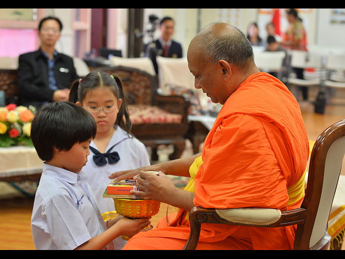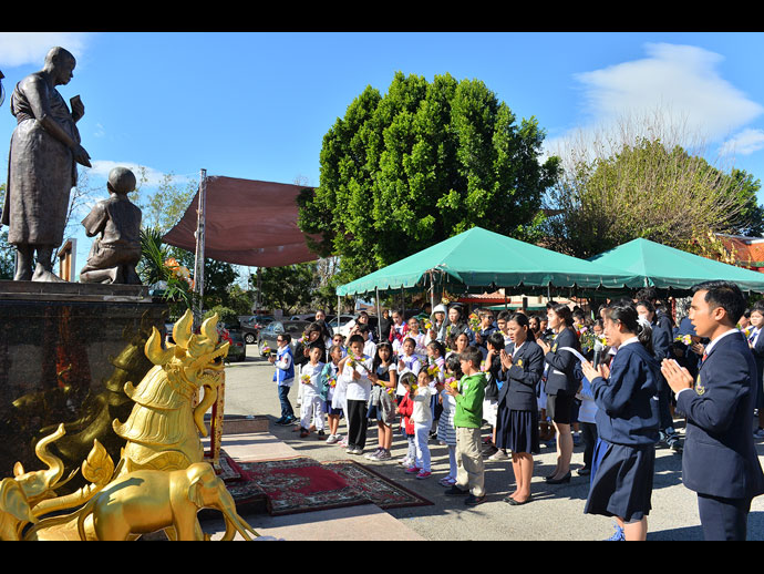 พิธีไหว้ครูประจำปี 2557 ซึ่งโรงเรียพุทธศาสนาวัดไทยแอล.เอ. โดยคณะครูอาสาสมัครร่วมใจกันจัดขึ้นเมื่อบ่ายวันเสาร์-อาทิตย์ ที่ผ่านมา ผู้ปกครองให้ความสนใจ “อุ้มลูกจูงหลาน” เข้าร่วมพิธีอย่างอบอุ่นด้วยตระหนักเป็นอย่างดีว่า ครูเป็น “พ่อแม่คนที่สอง” ของลูกๆ ให้ลูกๆ ได้รำลึกถึงพระคุณครูอาจารย์ แสดงความกตัญญูกตเวทิตาธรรมต่อคุณครู อันจะส่งผลให้เกิดความรักความผูกพันและความภาคภูมิใจในความเป็นไทยมากยิ่งขึ้น โดยในพิธีวันเสาร์ ท่านกงสุลใหญ่ ณ นครลอสแอนเจลิส เจษฎา กตเวทิน ให้เกียรติเป็นประธานในพิธี ส่วนวันอาทิตย์ ครูแต๋ว สุวัฒนา ปิ่นวัฒนะ ครูอาวุโสอยู่คู่โรงเรียนวัดไทยฯ มาตั้งแต่ปี 1974 ให้เกียรติเป็นประธานครูในพิธี