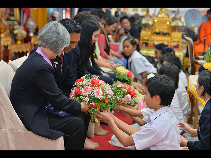 นอกเหนือจากคณะครูอาสาท้องถิ่น และครูอาสาประจำการ 1 ปี จากโครงการสอนภาษาไทยและวัฒนธรรมไทยในต่างประเทศ คณะครุศาสตร์ จุฬาฯ ชุดปัจจุบัน เข้าร่วมพิธีนั่งเรียงแถวให้เด็กๆ เข้ามอบดอกไม้บูชาพระคุณครูและกราบขอพรชัยมงคลแล้ว ทางโรงเรียนได้เชิญอดีตครูของโรงเรียนเข้าร่วมพิธีด้วย โดยอดีตคุณครูที่ให้เกียรติเข้าร่วมพิธีปีนี้ คือ คุณครูก่องแก้ว (รงควิลิต) โควานันท์ ครูใหญ่คนแรก ปี 1982 ครูจิตสมัย สุวรรณสาคร (1982) ครูนวลมณี สีบุญเรือง (1985) ครูสุวพรรณ เอเวอร์ซัน (1986) ครูเพ็ญนภา มิลเลอร์ ครูเศรษฐพรรณ ยูวะเวส (2003) ครูสมจิต เค้าอ้น (2005) ครูกนกพันธ์ ปานสำลี ครูนูโน่ สุรสีห์ จิตมานนท์ และครูอรุณรัศมี อัมพุนันทน์ จากโรงเรียนวัดป่าธรรมชาติ ขออนุโมทนาขอบคุณไว้ ณ โอกาสนี้
