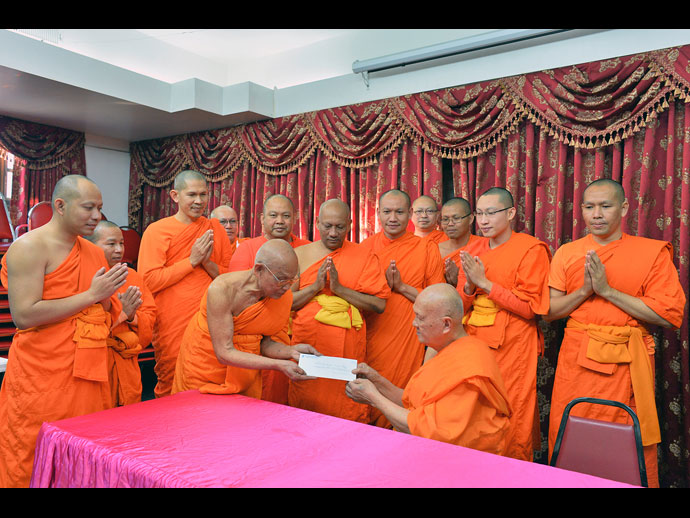 ประชุมคณะครูอาสา โรงเรียนพุทธศาสนาวัดไทยแอล.เอ. ภาคปกติ ประจำสัปดาห์ที่ผ่านมา อภิษฎา กลกาญจ์กิจ ประธานชมรมผู้ปกครองนักเรียน ซึ่งเป็นหัวเรือใหญ่ ในการจัดงาน “เหมันต์หรรษา เฮฮาสี่ภาค” ในวันสุดท้ายของ ภาคเรียนที่ผ่านมา เพื่อระดมทุกซ่อมแซมอาคารโรงเรียน โดยเฉพาะการซ่อมฝ้าเพดานของอาคารเรียน สรุปเป็นยอด รายรับทั้งสิ้น 9,582.62 เหรียญ ยอดรายจ่าย คือ 4,838.86 เหรียญ แบ่งเป็นรายการจ่ายทั่วไป หรือเบ็ดเตล็ด จำนวน 1,338.86 มอบให้คณะครูประจำการ 1 ปี เพื่อการทัศนศึกษานอกสถานที่ จำนวน 1,000 เหรียญ และมอบเป็นค่าใช้ จ่ายสำหรับพิธีไหว้ครูและครอบครูขอบแผนกนาฏศิลป์ จำนวน 2,500 เหรียญ เหลือเข้าวัดเพื่อการซ่อมแซมอาคาร เรียนเป็นจำนวน 4,838.86 เหรียญ จึงแจ้งมาเพื่ออนุโมทนาบุญโดยทั่วกัน