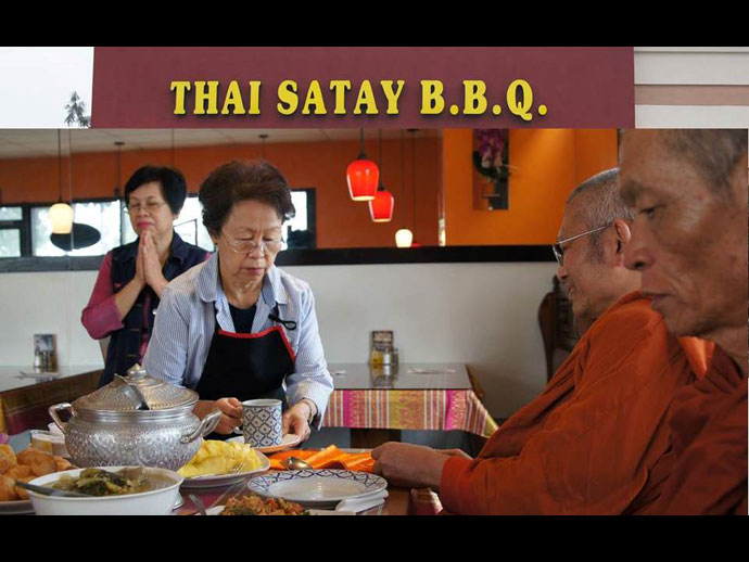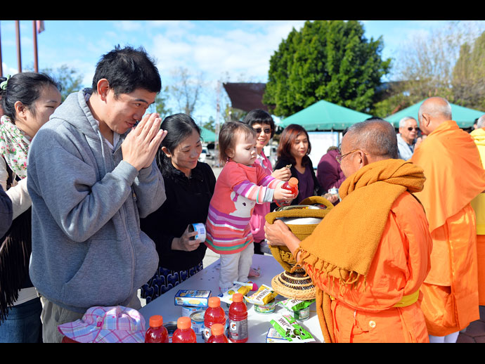 งานเทศกาลสงกรานต์วัดไทยแอล.เอ. ซึ่งปีนี้กำหนดงานวันเสาร์-อาทิตย์ที่ 11-12 เมษายน 2558 นั้น หลังจากประชุมร่วม กันทั้งพระสงฆ์และญาติโยมไปเมื่อ 2 สัปดาห์ที่แล้ว โดยคณะกรรมการแต่ละแผนกต่างก็ “เดินหน้า” เข้าเกียร์เตรียม ความพร้อมกันอย่างเข้มข้น โดยเฉพาะแผนกตลาดอาหารและสินค้าพื้นเมือง ซึ่งช่วงนี้ท่านสุมนะ พระครูสุมณฑ์ธรรมวงศ์ และพระมหาบุญลือ วชิรเมธี ต่างก็ช่วยกันเทคโอเวอร์แทนท่านเยือนศรัณย์ ซึ่งกลับเมืองไทยชั่วคราวไปพลางๆ ก่อนนั้น แจ้งให้ทราบว่า ทางแผนกตลาดอาหารงานสงกรานต์วัดไทยฯ มีกำหนดจับสลากบูธอาหารในวันอาทิตย์ที่ 8 มีนาคม 2558 เวลา 09.00 น. ณ บริเวณเต้นท์ใต้ต้นไม้หน้าอาคารอเนกประสงค์ ขอเชิญพ่อค้าแม่ขายไปจับสลากกันได้ตามวัน และเวลาดังกล่าว หรือโทรสอบถามรายละเอียดได้ที่ พระมหาบุญลือ วชิรเมธี เบอร์ 818-579-3217