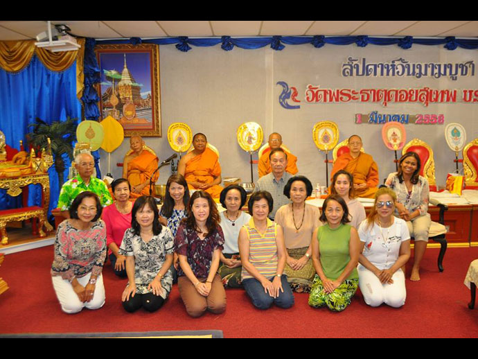 วัดพระธาตุดอยสุเทพ USA เมืองชิโนฮิลส์ ขอเชิญพุทธศาสนิกชนร่วมสืบสานประเพณีสงกรานต์ วันอาทิตย์ที่ 19 เมษายน 2558 ตั้งแต่เวลา 10.00 น. ทำบุญตักบาตร ถวายภัตตาหารเพล ถวายสังฆทาน บังสุกุลอุทิศ สรงน้ำพระ รดน้ำขอพรผู้ใหญ่ ถวายผ้าป่าสามัคคี ประธานจัดงาน ยุพินพักตร์ เตโชภาส ประธานทอดผ้าป่า สมยศ ทวีลาภ และในเวลา 17.00 น. (5.00 pm) ขอเชิญร่วมงานดินเนอร์ขันโตกการกุศล อาหารชาวเหนือ แต้ๆ ประธานงานขันโตก ตุ๊กตา มาร์ บัตรราคา $25 ติดต่อสอบถามได้ที่ Tel: 909-606-9502 นิตยา โชติรโส (626-708-1659) กิริยา หิรัญพลกุล (จอย) (818-363-8898) ดร.แหลมทอง ศิลปานนท์ (909-896-5786) www.watdoisuthepusa.org E-mail: watchino18@gmail.com