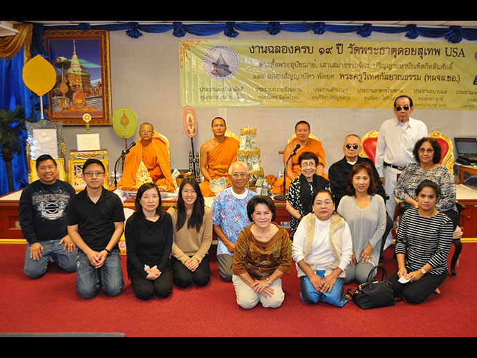 และขอเชิญพุทธศาสนิกชนร่วมงานฉลอง 19 ปี วัดพระธาตุดอยสุเทพ USA, ฉลองสมณศักดิ์-พัดยศ, ตราตั้งพระอุปัชฌาย์, รางวัลเสาเสมาธรรมจักร ปริญญามหาบัณฑิตกิตติมศักดิ์ (สาขาธรรมนิเทศ) พระครูวิเทศกัลยาณธรรม (ฐิติกร กลฺยาณธมฺโม) เจ้าอาวาสวัดในวันอาทิตย์ที่ 21 มิถุนายน 2558 ตั้งแต่เวลา 09.30 น. เป็นต้นไป ทำบุญตักบาตร ถวายภัตตาหารเพล ถวายมหาสังฆทาน ถวายผ้าป่าสามัคคี