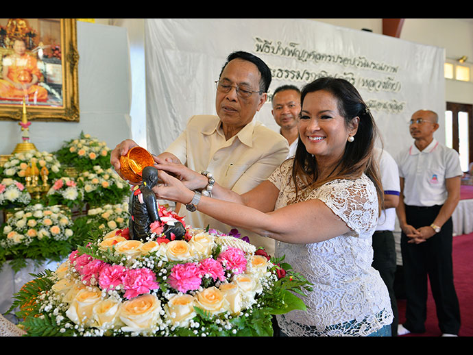 ช่วงบ่ายเริ่มพิธีเวลา 13.00 น. พระสงฆ์ประกอบพิธีทักษิณานุปทานอุทิศถวายหลวงเตี่ย แล้วเป็นการแสดงนาฏศิลป์ของ แผนกนาฏศิลป์ โรงเรียนพุทธศาสนาวัดไทย โดยครูแพร อรพิชญา พงษ์อัมพรพิชญ์ และเด็กๆ นักเรียนนาฏศิลป์ ในชุด “รำลึกคุณหลวงเตี่ย” และ “อัญเชิญพระขวัญ” จบแล้วหลวงพ่อใหญ่นำพระสงฆ์และญาติโยมอุบาสกอุบาสิกาที่เข้าร่วมพิธีแน่นอุโบสถศาลาเรียงแถวเข้าสรงน้ำรูปเหมือนหลวงเตี่ย จนกระทั่งถึงเวลา 15.00 น. งานบุญพิธีครบรอบวันมรณภาพ หลวงเตี่ยจึงเป็นอันยุติ คณะสงฆ์วัดไทยฯ ขออนุโมทนาญาติโยมทุกท่าน เจ้าภาพโรงทานบริการอาหารฟรี ที่ศรัทธาร่วมใจ กันจัดทำขึ้นเพื่ออุทิศถวายหลวงเตี่ย พระธรรมราชานุวัตร ผู้สร้างสรรค์วัดไทยฯ ให้เป็น “วัดไทย” ที่สมบูรณ์ที่สุดเป็นแห่ง แรกในอเมริกา