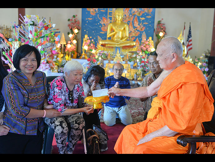 และขอเชิญพุทธศาสนิกชนร่วมงานถวายผ้าพระกฐินพระราชทาน-งานประเพณียี่เป็ง ในวันอาทิตย์ที่ 15 พฤศจิกายน 2558 ตั้งแต่เวลา 10.30 น. เป็นต้นไป ทำบุญตักบาตร ถวายภัตตาหารเพล ถวายมหาสังฆทาน ถวายผ้าพระกฐินพระราชทาน จึงขอเรียนเชิญร่วมพิธีสมโภชผ้าพระกฐินพระราชทาน และร่วมบริจาคถวายเป็นพระราชกุศลในครั้งนี้ด้วย ติดต่อประกวดเทพียี่เป็ง คุณใหญ่ (ร้านภูเขา) 323-599-8609 สุรภี พุกดำ 626-384-4929 ตุ๊กตา มาร์ 310-430-2040