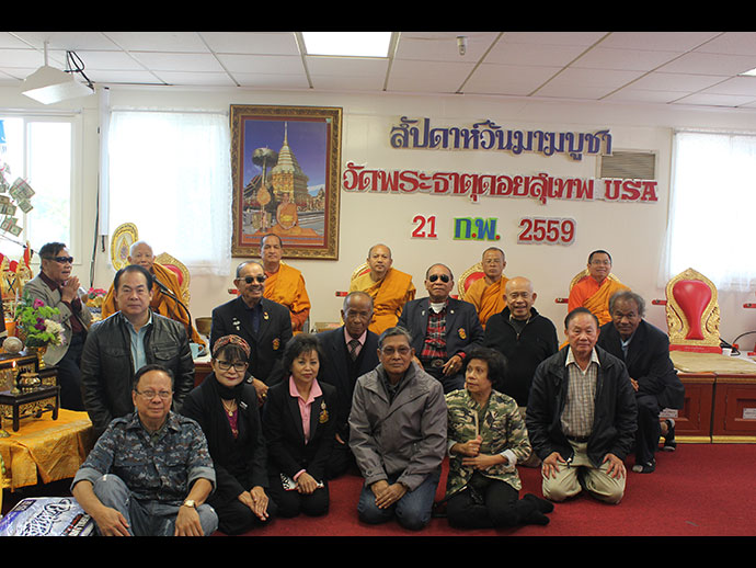 วัดพระธาตุดอยสุเทพ USA เมืองชิโนฮิลส์ รัฐแคลิฟอร์เนีย ขอเชิญพุทธศาสนิกชนร่วมบำเพ็ญบุญวันมาฆบูชา วันอาทิตย์ที่ 21 กุมภาพันธ์ 2559 ตั้งแต่เวลา 10.30 น. เป็นต้นไป ทำบุญตักบาตรพระสงฆ์ ถวายภัตตาหารเพล ถวายสังฆทาน ฟังพระธรรมเทศนา ถวายผ้าป่าสามัคคี เวียนเทียนเป็นพุทธบูชา ติดต่อสอบถามได้ที่ Tel: 909-606-9502 E-mail: watchino18@gmail.com