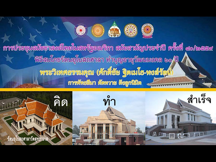 คณะสงฆ์วัดไทยแอล.เอ. โดยหลวงพ่อใหญ่ ท่านเจ้าคุณพระเทพมงคลวิเทศ ขออนุโมทนาขอบพระคุณ ท่านเจ้าคุณพระ ราชภาวนาจารย์ หรือท่านทัตตชีโว ภิกขุ รองเจ้าอาวาสวัดพระธรรมกาย ปทุมธานี บริจาคเงินจำนวน 10,000 เหรียญ (หนึ่งหมื่นเหรียญสหรัฐ) สมทบทุนก่อสร้างศูนย์ปฏิบัติธรรมวัดไทยลอสแองเจลิส